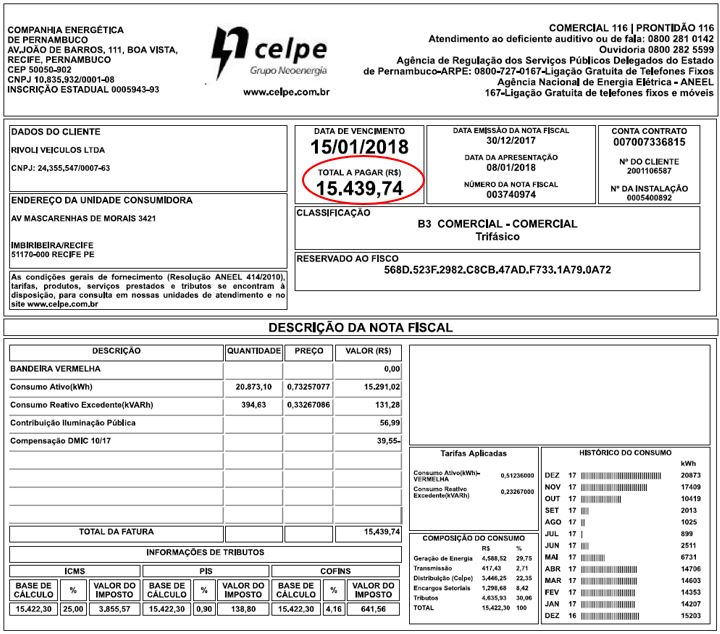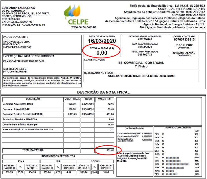 1.Comparativo do antes e depois da Geração de energia solar na Conta de energia CELPE: